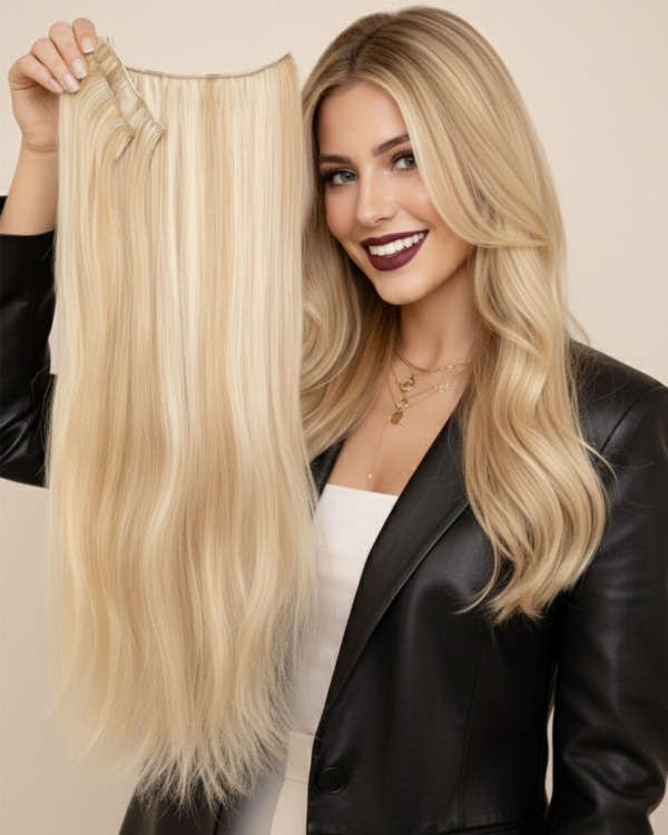 Yarım ay çıt çıt, 8 parçalık çıt çıt'lardan daha kolay ve pratik bir kullanıma sahiptir. Sadece saçlarınız uzatmak için değil, aynı zamanda daha gür bir görünüm için de kullanabilirsiniz. Dilerseniz atkuyruğu olarak kullanabilirsiniz.