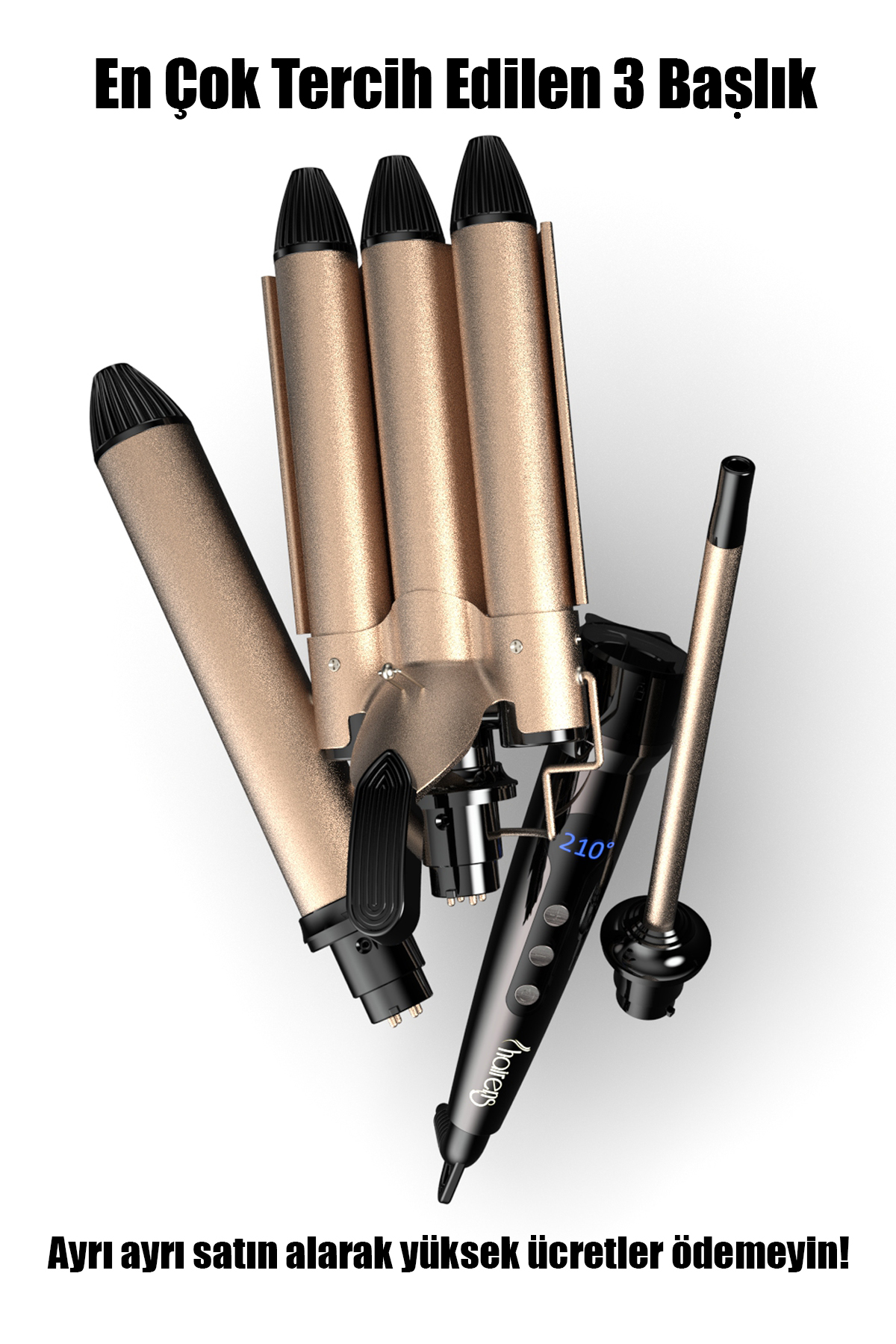 Tüm dalga formlarını tek bir set ile oluşturabileceğiniz Hairens HRS-960 4 Parçalı Saç Şekillendirme Seti saçlarınıza istediğiniz her türlü formu kolayca verebilmeniz için tasarlandı. Hairens HRS-960 ile afro dalga saç modelinden geniş okyanus dalgalarına kadar farklı dalgalar yaratabilirsiniz.